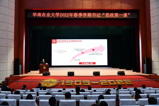 3月24日下午,校党委书记王斌伟以“牢记嘱托担使命 增信力行闯未来”为主题,在丁颖礼堂为2021级研究生讲授“思政第一课”,300余名研究生代表到场听课。