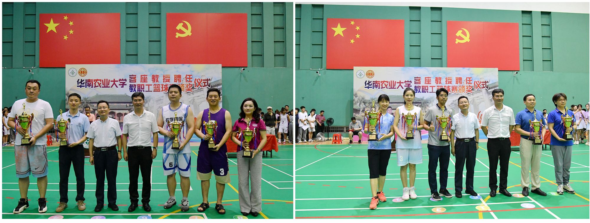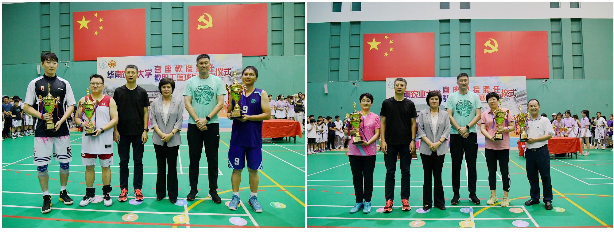 随后,在2022年教职工篮球比赛颁奖仪式上,刘雅红、杜锋、郭士强共同为获得我校女子趣味篮球、男子篮球团体前三名的部门工会颁发荣誉奖杯。