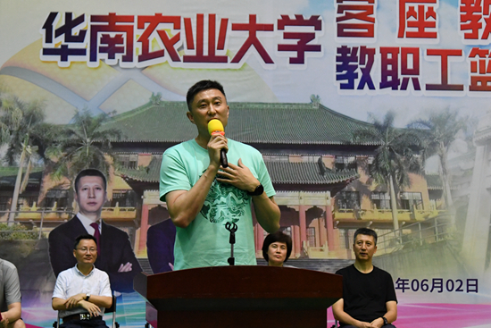 杜锋表示,很高兴能够成为华农的客座教授,相信今后会有更多与大家相互交流、相互学习的机会,希望大家继续热爱篮球,支持篮球,参与篮球,也希望大家继续支持中国国家篮球队,支持广东队。