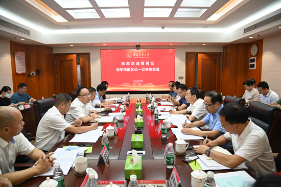 王斌伟向何宇鸿一行的到来表示欢迎,并围绕党建引领、学科建设、专业建设、人才培养、社会服务等方面介绍了我校的基本情况。王斌伟指出,希望学校能进一步深入、深化与黄埔区的合作。一方面,要紧紧围绕黄埔区实际需求,推动现有合作项目落地落实,积极探索以黄埔创新研究院为核心的“黄埔模式”,让现有合作项目看得见摸得着有影响,不断提升项目美誉度。另一方面,继续拓展与黄埔区的合作领域,联合共建华农黄埔区乡村振兴研究院,结合黄埔区实际需求,找准黄埔乡振院定位与特色,加强内涵建设;以华农在大吉沙岛智慧农场等平台为抓手,持续推进我校服务黄埔区乡村振兴“五大振兴”落地落实,为黄埔区乡村振兴提供全口径全链条全方位的支持;深化“实习+就业”人才培养模式,与黄埔区企业单位共建实习基地,提升人才培养质量,为黄埔区输送更多优质人才。