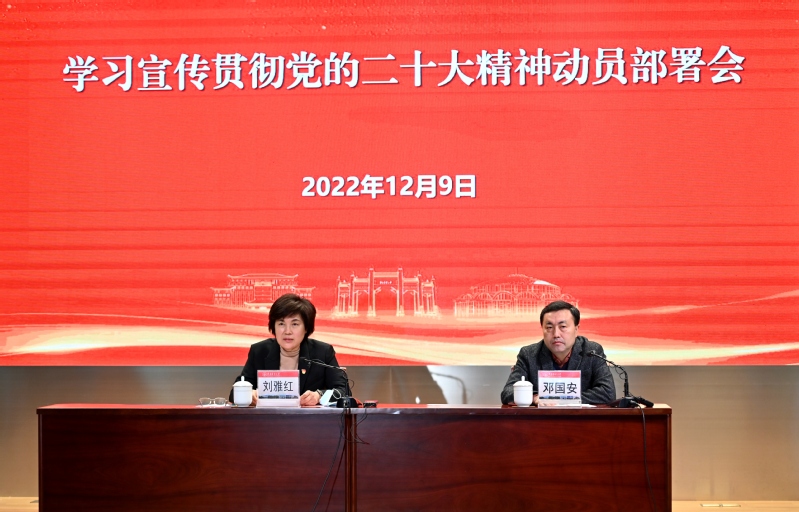 刘雅红强调,要切实抓好党的二十大精神的学习宣传,持续兴起学习宣传贯彻热潮。一是在学深学透上下苦功夫,全面准确把握大会的精神实质。二是在全面学习上下实功夫,迅速开展全覆盖、立体式学习宣讲。三是在宣传阐释上下真功夫,努力营造浓厚的学习宣传氛围。