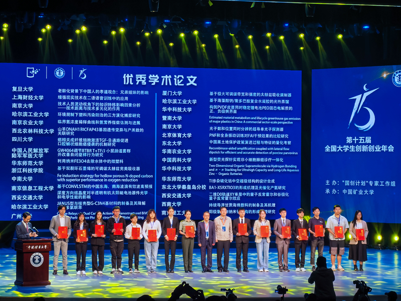 近日,以“十五载砥砺奋进,新征程智创未来”为主题的第十五届全国大学生创新创业年会(简称“国创年会”)在中国矿业大学南湖校区举行。来自全国28个省(市、自治区)的高校师生代表,教育部、地方教育主管部门代表,国家级大学生创新创业训练计划(以下简称“国创计划”)专家组成员以及行业代表共1300余人参加了会议。