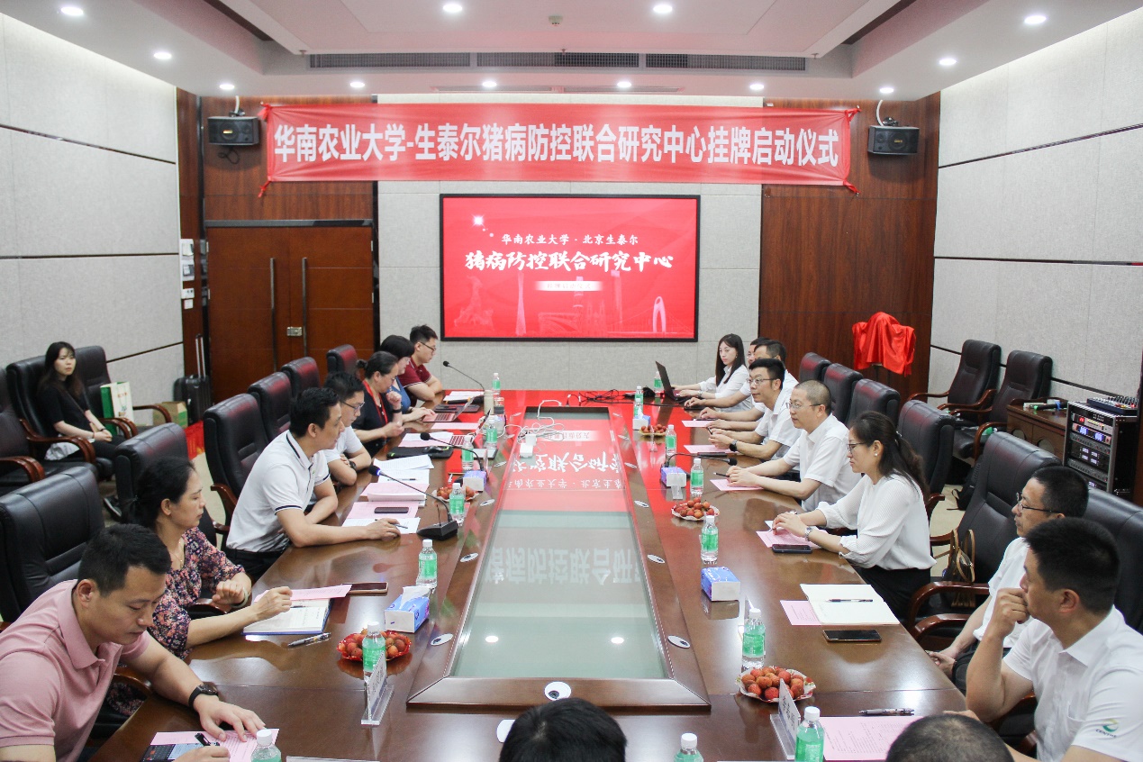 6月10日,“华南农业大学-生泰尔猪病防控联合研究中心”挂牌启动仪式在我校兽医学院举行。我校兽医学院张桂红教授团队、北京生泰尔科技股份有限公司经营团队、学校科学研究院和兽医学院有关负责人出席仪式。