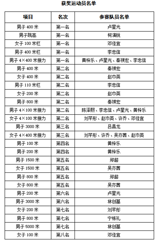6月21日至24日,中国高等农业院校第十届大学生田径运动会在山东农业大学举行。经过四天激烈角逐,我校代表队最终以总分174分获得乙组团体总分冠军及男子总分冠军、女子总分亚军,共斩获五枚金牌、七枚银牌、两枚铜牌、两项第四名、四项第五名、两项第六名、三项第七名、一项第八名,创造了我校在全国农林田径运动会的最好成绩。