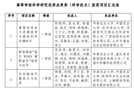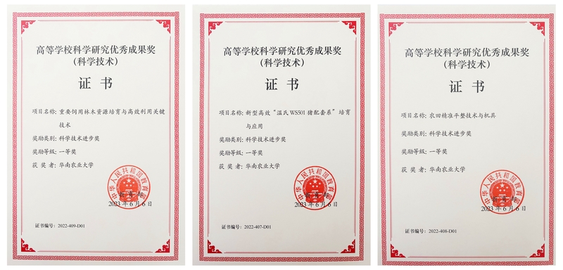 近日,教育部颁发了高等学校科学研究优秀成果奖(科学技术)获奖证书。我校陈晓阳教授、吴珍芳教授、胡炼教授主持的项目均获一等奖,这是自2008年教育部设立该奖项以来,我校首次在同一年度获得3项一等奖,创学校历史新高。同时也是我校首次在林业、畜牧养殖领域获得教育部颁发的一等奖,是学校“双一流”建设以来的又一重大成果。