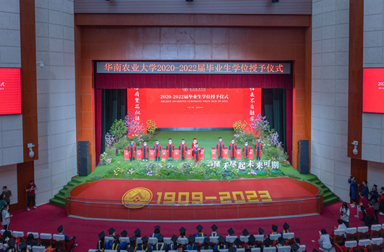 本次补办学位授予仪式从6月30日上午9点30分开始,一直持续到当日下午6点左右,共设置场次5个,由校长刘雅红和校学位评定委员会委员为三千余名报名参加仪式的2020至2022届毕业生授予学位并逐一拨穗。授予学位完毕后,由毕业生代表向校学位评定委员会委员敬献华农穗。