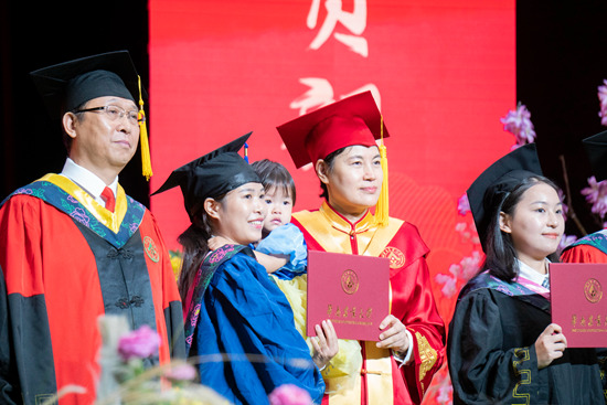 “今早五点,我们一家三口就从深圳出发来华农了。”兽医学院2020届硕士研究生陈阳华这次是带着妻儿一同参加补办仪式,“想让孩子感受一下百年老校的文化氛围。”时隔三年回到校园,他用“焕然一新”来形容现在的华农,尤其是升级改造后的西门,变得整洁又富有设计感,让他很是惊喜。回望在华农读书的那段时光,陈阳华的眼里不禁盛满了笑意:“如今我已成为了一名主任兽医师,很感谢母校当初对我的培养!”
