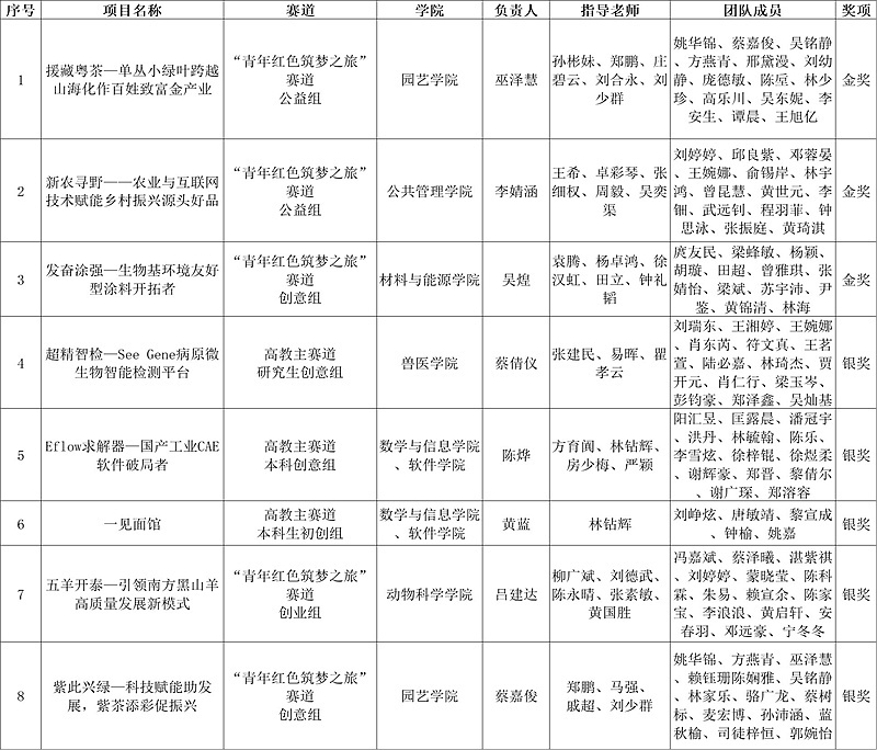 附:华南农业大学获奖项目名单