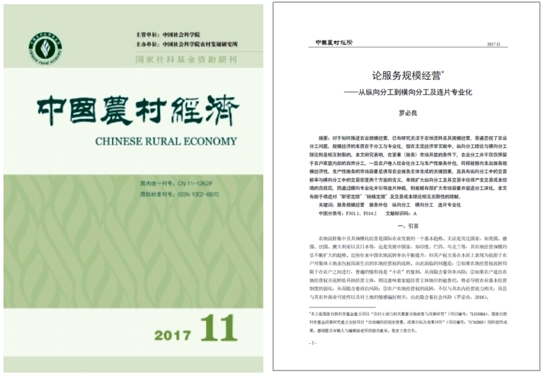 日前,经过多轮评审和专家投票,第九届“中国农村发展研究奖”评审结果揭晓,我校文科资深教授、国家农业制度与发展研究院院长罗必良教授的研究成果《论服务规模经营——从纵向分工到横向分工及连片专业化》荣获“中国农村发展研究奖”论文奖。这是罗必良教授第三次获此殊荣。