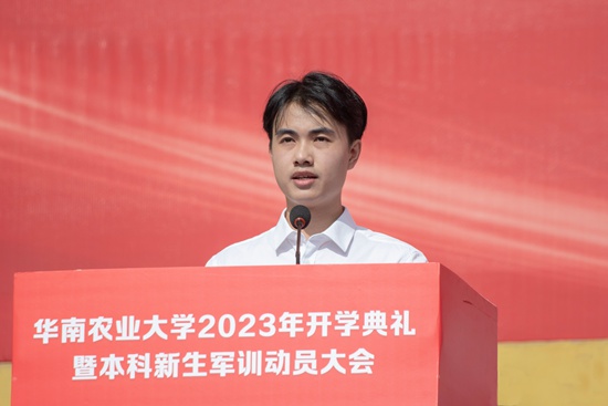 “知农爱农、强农兴农,这是华农师生的光荣使命;一代代华农人弦歌不辍、薪火相传,我们更应追随榜样,向光而行!”来自生命科学学院2023级生物科学(生物学基地班)专业的游苏桐同学代表本科新生上台发言,号召同学们立大志、担大任、成大才,以青春之力逐梦伟大时代。