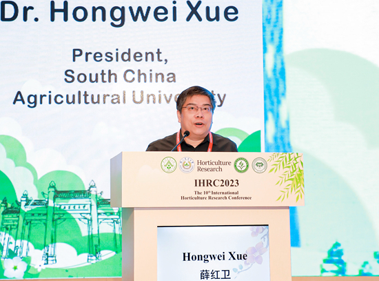 薛红卫向参会人员介绍了华南农业大学的发展概况以及园艺学科领域的研究成果。他指出,本次国际园艺研究大会报告主题覆盖面广,期待每位参会者都积极参与,分享最前沿的知识、强化已有的合作基础以及创造新的合作机会。