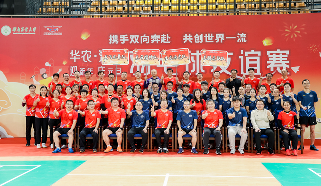 为巩固校企合作,强化双方情谊,展望美好未来,12月30日下午,华南农业大学与温氏集团在学校综合体育馆举行以“携手双向奔赴、共创世界一流”为主题的“迎新年·庆元旦”羽毛球友谊赛。温氏集团董事长温志芬,总裁黎少松,董事、副总裁赵亮,我校党委书记李凤亮,校长薛红卫,副校长咸春龙以及双方球员共计60余人参加比赛。