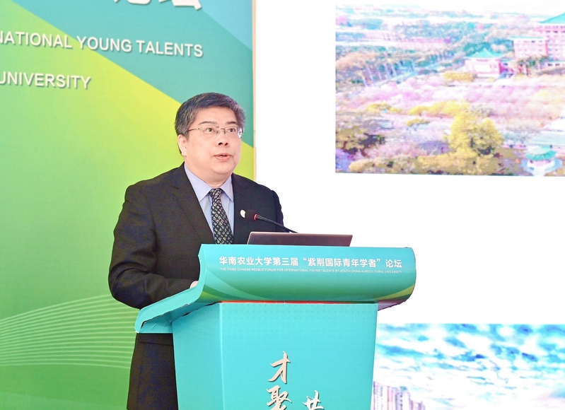 为深入实施新时代人才强校战略,1月18日上午,华南农业大学第三届“紫荆国际青年学者”论坛在红满堂开幕。本次论坛以主论坛和分论坛、线上和线下相结合的方式进行,为各学科领域的青年学者搭建高水平的学术交流平台,围绕学术前沿探讨学科热点,促进交流合作,来自亚洲、北美、欧洲34个国家和地区的762名优秀青年学者报名参会,涵盖作物学、兽医学、农业工程等多个学科领域。校党委书记李凤亮、校长薛红卫出席论坛并讲话,副校长温小波主持论坛。