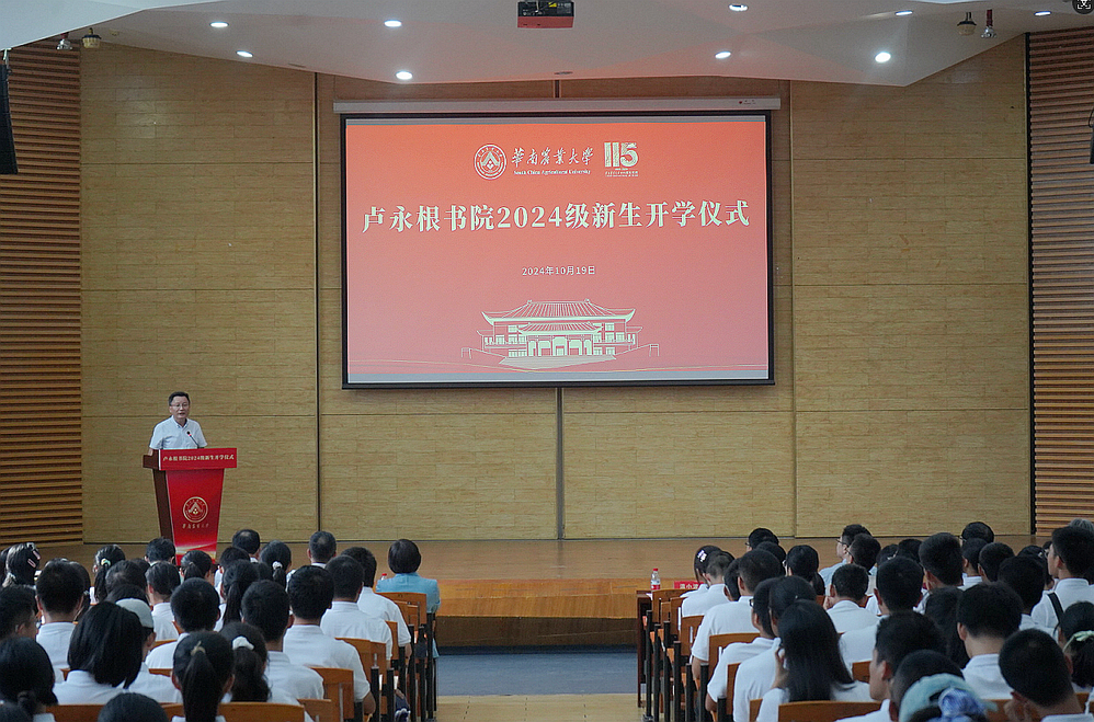 近日,卢永根书院在思政体验馆举行2024级新生开学仪式。学校副校长、卢永根书院院长温小波出席仪式并致辞,书院400余名2024级新生参加仪式。