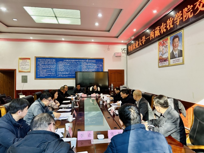 为进一步推动我校与西藏农牧学院对口支援工作走深走实,12月24日,副校长温小波带队前往西藏农牧学院进行调研交流。西藏农牧学院党委委员、副校长曹仲华以及林芝市教育局副局长、广东省第十批援藏工作队成员张正安出席交流。