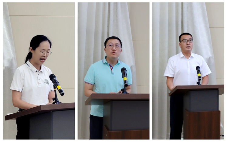 会上,华农优秀科技特派员代表园艺学院李丹、资源环境学院王瑞龙、动物科学学院柳广斌围绕各自团队在科技助力“百千万工程”中的经验做法作案例分享。作为紫金蝉茶团队负责人,李丹介绍,团队瞄准紫金县特色蝉茶产业,对茶园栽培管理、制茶技艺、茶叶品牌建设、茶园运输轨道搭建等全链条提供技术攻关与指导,一年服务紫金蝉茶的专家学者达1000人次以上。