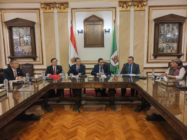 在埃及期间,代表团首站访问了艾因夏姆斯大学(Ain Shams University,简称ASU),与该校校长及农学院、工程学院、工商学院、教育战略研究中心、孔子学院等负责人和专家举行会谈,并参观了ASU博物馆、计算机信息网络中心和教育战略研究中心等部门。基于两校在智慧农业、工程技术、计算机与信息技术、水土保持、适应气候变化农业技术、生态环境可持续性等领域的优势,提出了开展科技协同创新研究、师生交流、智慧教育、技术示范与推广以及语言文化交流互鉴的合作建议,为后续合作协议签署及推动落实具体合作项目奠定了基础。