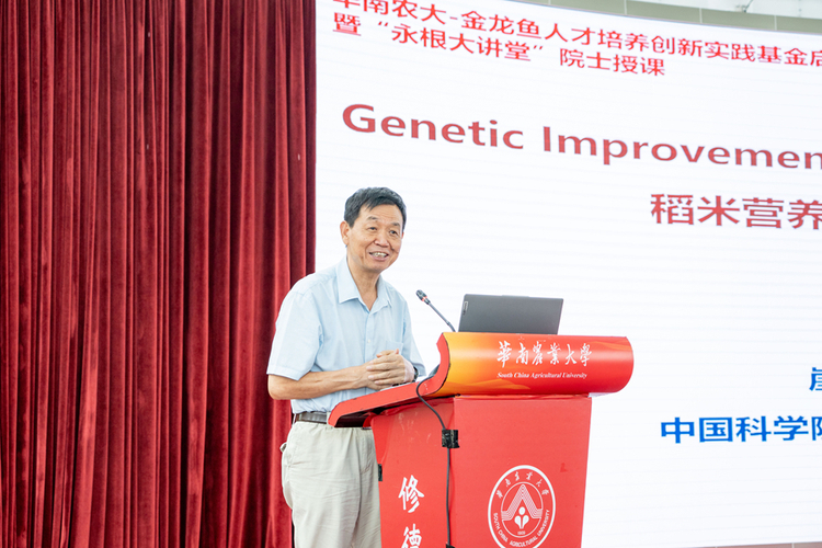 启动仪式后,李家洋为食品学院丁颖创新班、岭南特色预制菜产业创新班、卢永根书院学生代表作了题为“稻米营养与品质的遗传育种改良”的专题讲座。他从国家粮食安全的高度出发,强调种业振兴是粮食安全的核心保障,并结合实际案例与数据,系统介绍了水稻育种关键技术及品质与营养的遗传改良策略。