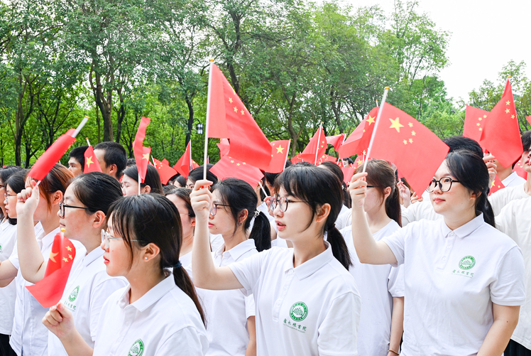 “红旗猎猎,映照初心;征途漫漫,惟有奋斗。今天,肃立于鲜艳的五星红旗下,全体华农人要把爱国之心、强国之志、报国之行和伟大抗战精神转化为建设‘双一流’的实干行动,为建设教育强国和农业强国贡献华农力量!”李凤亮指出,华农办学116年来,始终与国家发展同频共振、同向同行,以科教进步谋求农业强盛,以人才辈出服务国计民生。他与全体师生共勉,立报国之志、增强国担当,传师者风范、育强国英才,扬华农风采、做强国栋梁。