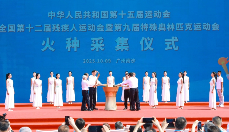 10月9日,第十五届全国运动会(下称“十五运会”)和全国第十二届残疾人运动会暨第九届特殊奥林匹克运动会(下称“残特奥会”)火种采集仪式在广州南沙举行,国家体育总局、中国残联、广东省委省政府主要负责同志与香港、澳门特别行政区行政长官共同登台,一起点燃十五运会和残特奥会火种盆,寓意粤港澳三地携手共进、同心筑梦。十五运和残特奥会广州赛区执委会副主任、华南农业大学校长薛红卫参加仪式。华农艺术学院表演专业2023级何佳伟、简淳,2024级朱婧涵、2025级陈曦以“采火少女”的身份亮相仪式,点燃采火棒的神圣一幕登上《新闻联播》。