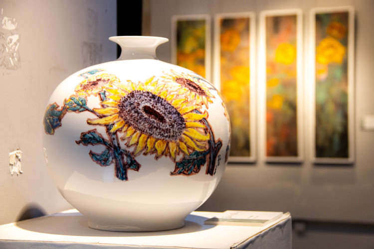 展览以“葵花”为主题,本次展览由李节平、范桂觉、陈伟雄、黄家忠、吴锐鸿、王晓晴携手打造,集中呈现六位艺术家远赴内蒙古和林格尔县葵花种植地的采风成果,并精选油画、国画、书法、综合材料、瓷艺、文创产品等80多件作品展出,其中部分捐赠给学校。展览还安排专题视频与宣传影放,全方位展现创作过程及艺术理念。