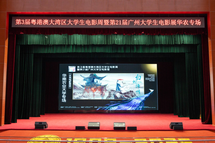 10月24日晚,第3届粤港澳大湾区大学生电影周暨第21届广州大学生电影展优秀电影展华南农业大学专场活动在丁颖礼堂举行。本次展映的影片为粤剧电影《白蛇传·情》,影片制片人孙金华,电影主演、著名粤剧演员曾小敏作为主创代表来到活动现场,与观影师生齐聚一堂,在光影间搭建传统与青年的对话桥梁,让国风古韵在校园焕发新生。