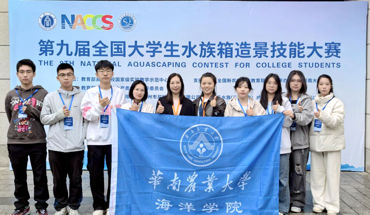 11月1-2日,第九届全国大学生水族箱造景技能大赛(NACCS)总决赛于西南大学举办,学校代表队斩获佳绩。水产养殖学专业2021级学生潘海锋、2023级学生周嘉茹获得中缸赛道组一等奖;水产养殖学专业2023级学生庹睿坤获得小缸赛道组三等奖;海洋科学专业2024级学生肖顺丽、吴思昕、周芷艺获得大缸赛道组三等奖;水产养殖学专业2024级学生徐宁、吴霖获得中缸赛道组优秀奖;学校获优秀组织奖。
