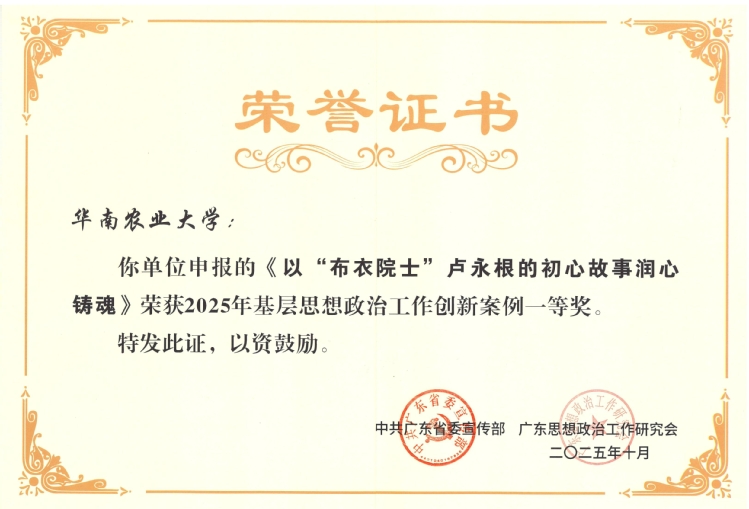 日前,中共广东省委宣传部、广东思想政治工作研究会公布了2025年全省基层思想政治工作创新案例获奖名单,我校以“布衣院士”卢永根的初心故事润心铸魂的做法和经验荣获创新案例一等奖。
