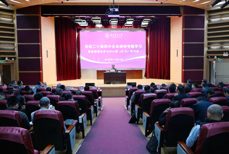 校领导,校党委委员、纪委委员,全校副处级以上领导干部,学校各民主党派组织、侨联会、党外知识分子联谊会主要负责人和党的二十届四中全会精神学校宣讲团成员共计300余人参加学习会。