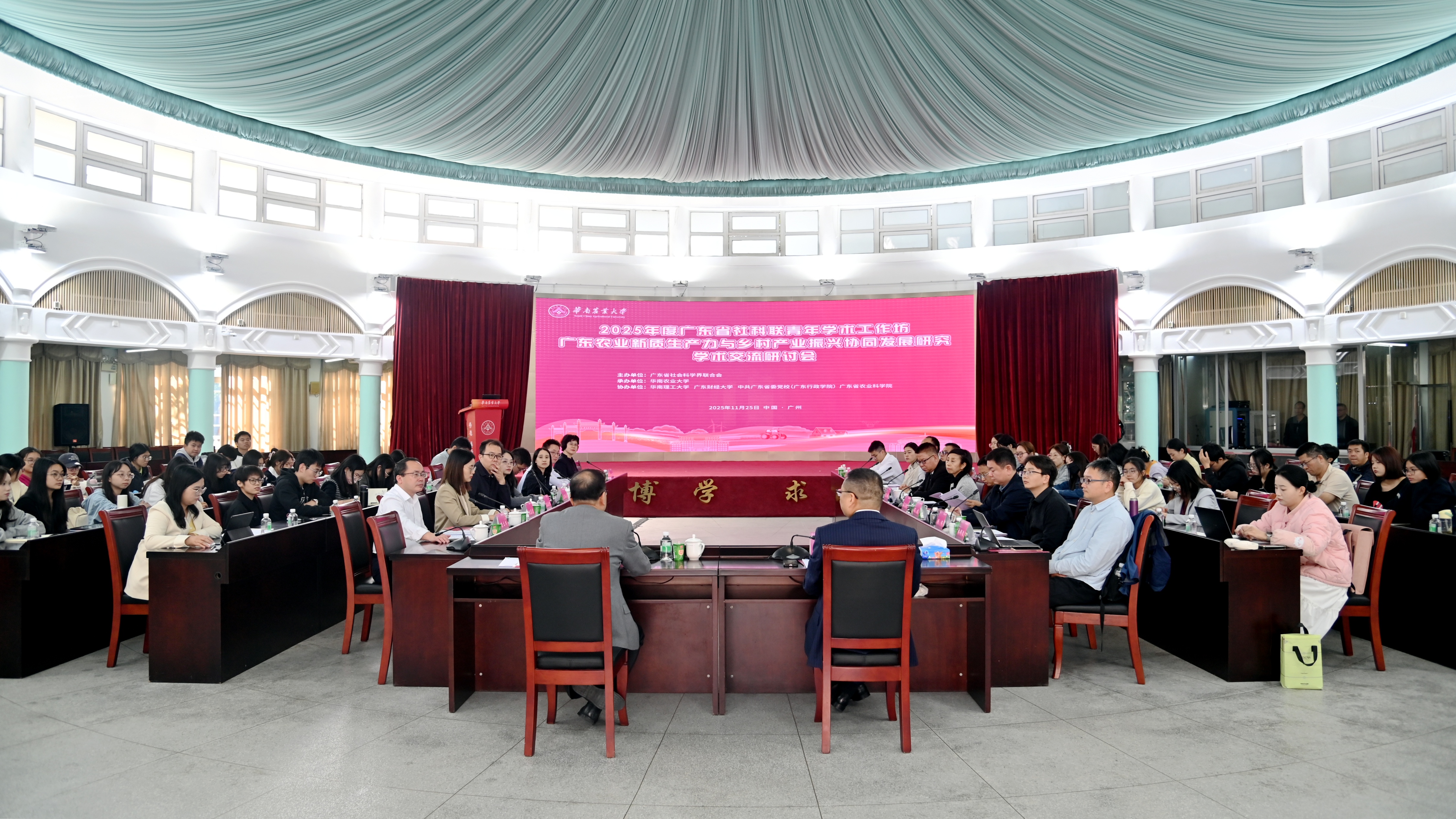 本次研讨会由广东省社会科学界联合会主办,华南农业大学承办,华南理工大学、广东财经大学、中共广东省委党校(广东行政学院)、广东省农业科学院等单位协办,50多名高校专家、青年学者参加会议。