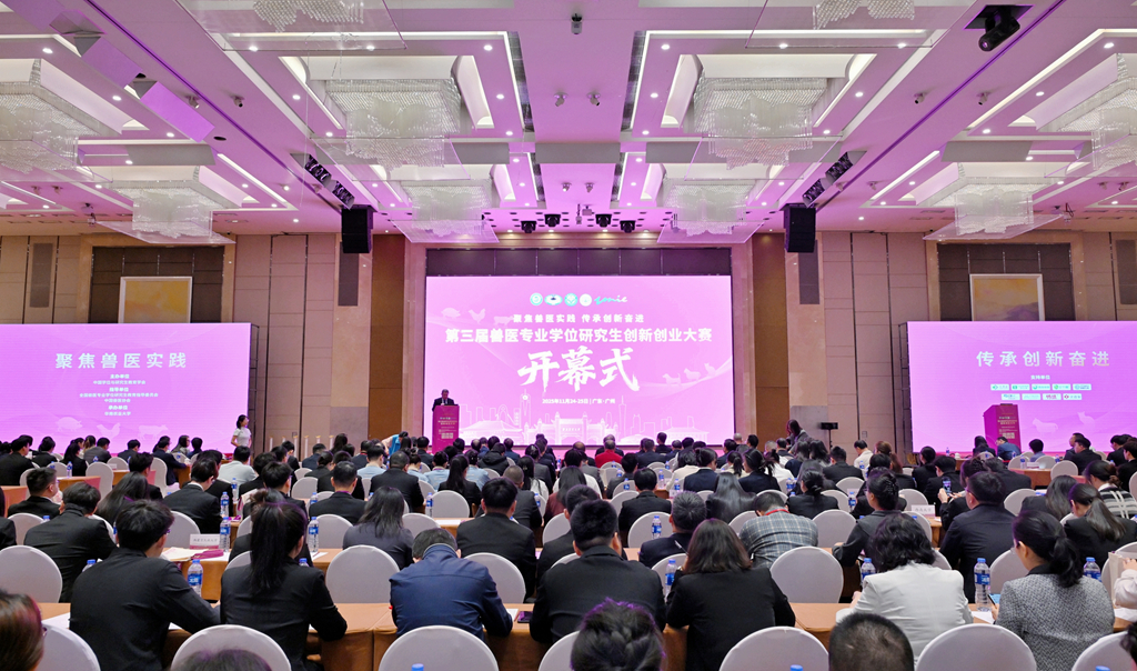 11月24-25日,第三届全国兽医专业学位研究生创新创业大赛决赛在广州成功举行。本届大赛由中国学位与研究生教育学会主办,全国兽医专业学位研究生教育指导委员会、中国兽医协会专家工作委员会指导,华南农业大学承办。大赛以“聚焦兽医实践,传承创新奋进”为主题,引导兽医专业学位研究生面向行业需求,将科学知识灵活应用于畜牧生产一线,助力畜牧业高质量发展。来自全国50所高校和科研单位的60支参赛队伍,总计600余名指导老师和研究生参加了决赛。