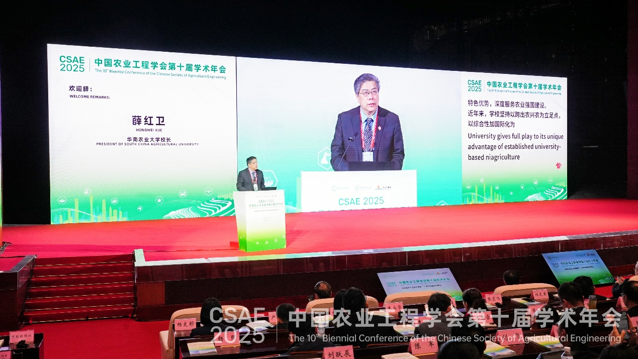 开幕式上,薛红卫表示,华南农业大学将以承办此次年会为契机,加强交流合作,利用AI技术聚焦关键应用场景,打造开放协同生态,构建学科交叉体系,驱动农业科技创新,为培育发展农业工程新质生产力注入强劲动能。