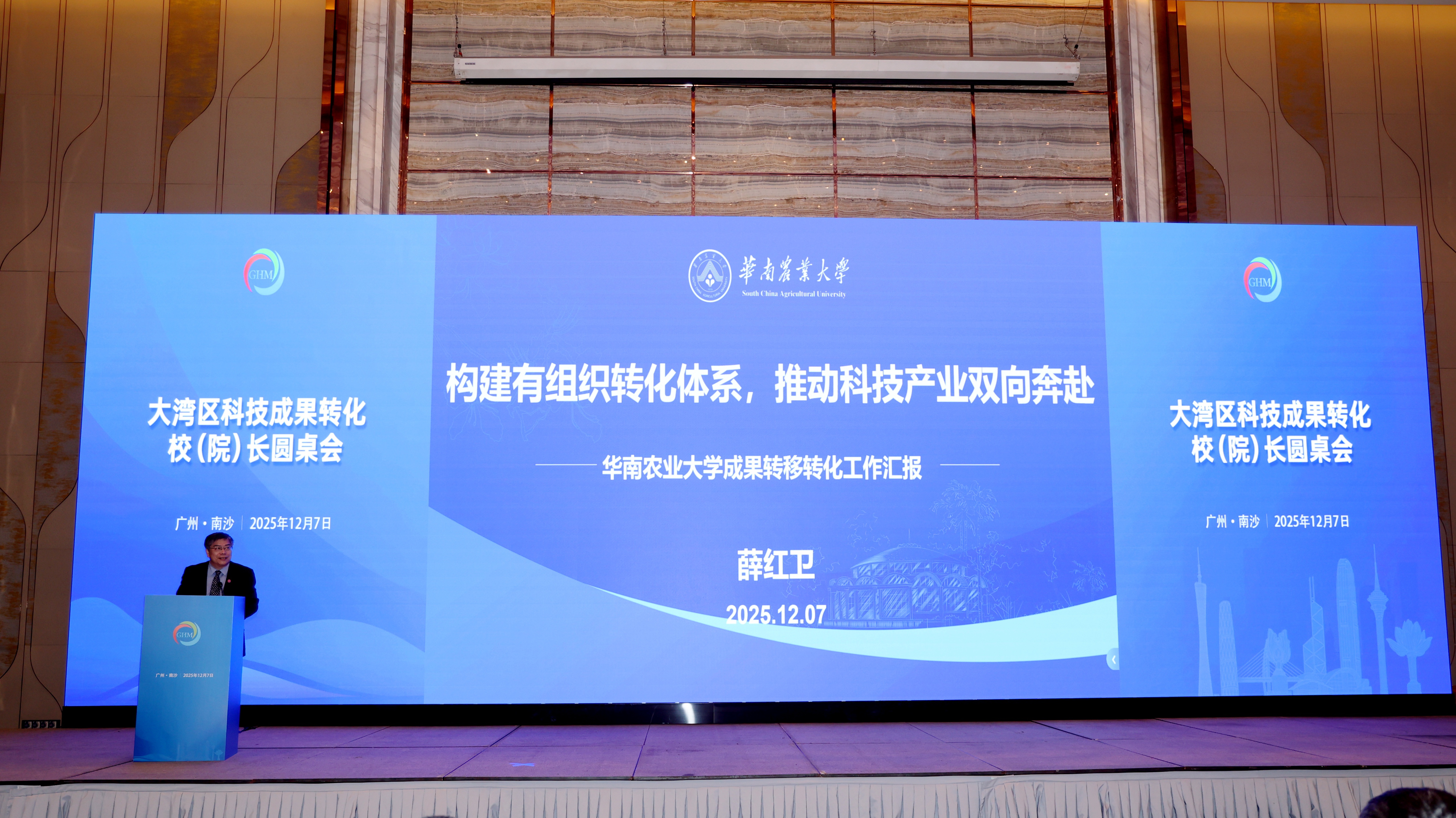 12月7日,粤港澳院士专家创新创业联盟第二次大会在广州南沙举行。华南农业大学入选粤港澳院士专家创新创业联盟第二届主席团成员单位,校长薛红卫当选为联盟第二届副主席。薛红卫在大会上以《构建有组织转化体系,推动科技产业双向奔赴》为题作主旨报告,分享华农在科技成果转移转化方面的系统探索与实践经验。