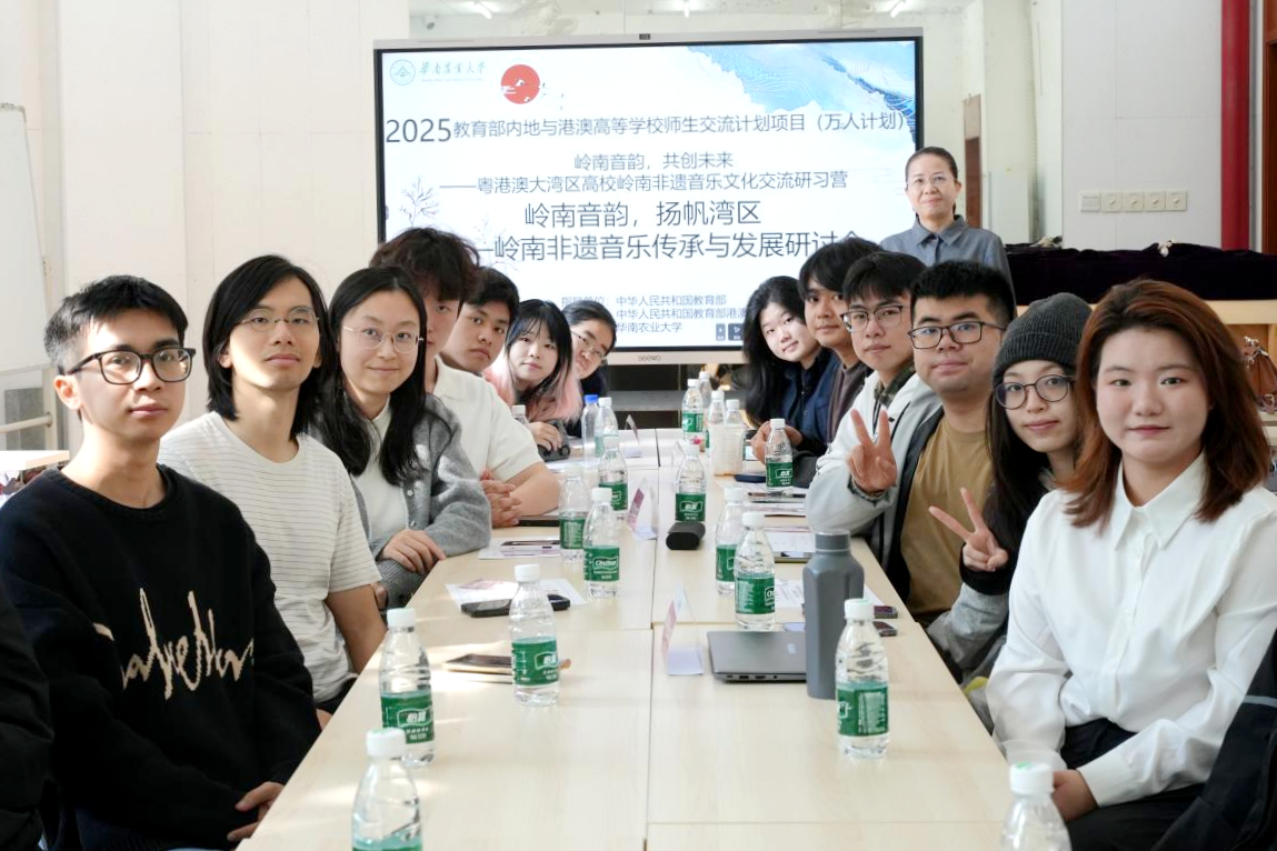 近日,由华南农业大学主办的2025年教育部内地与港澳高等学校师生交流计划项目(万人计划)——“岭南音韵,共创未来”粤港澳大湾区高校岭南非遗音乐文化交流研习营落幕。来自华南农业大学、香港大学、香港浸会大学、澳门旅游大学等粤港澳三地高校的60名师生参加活动。