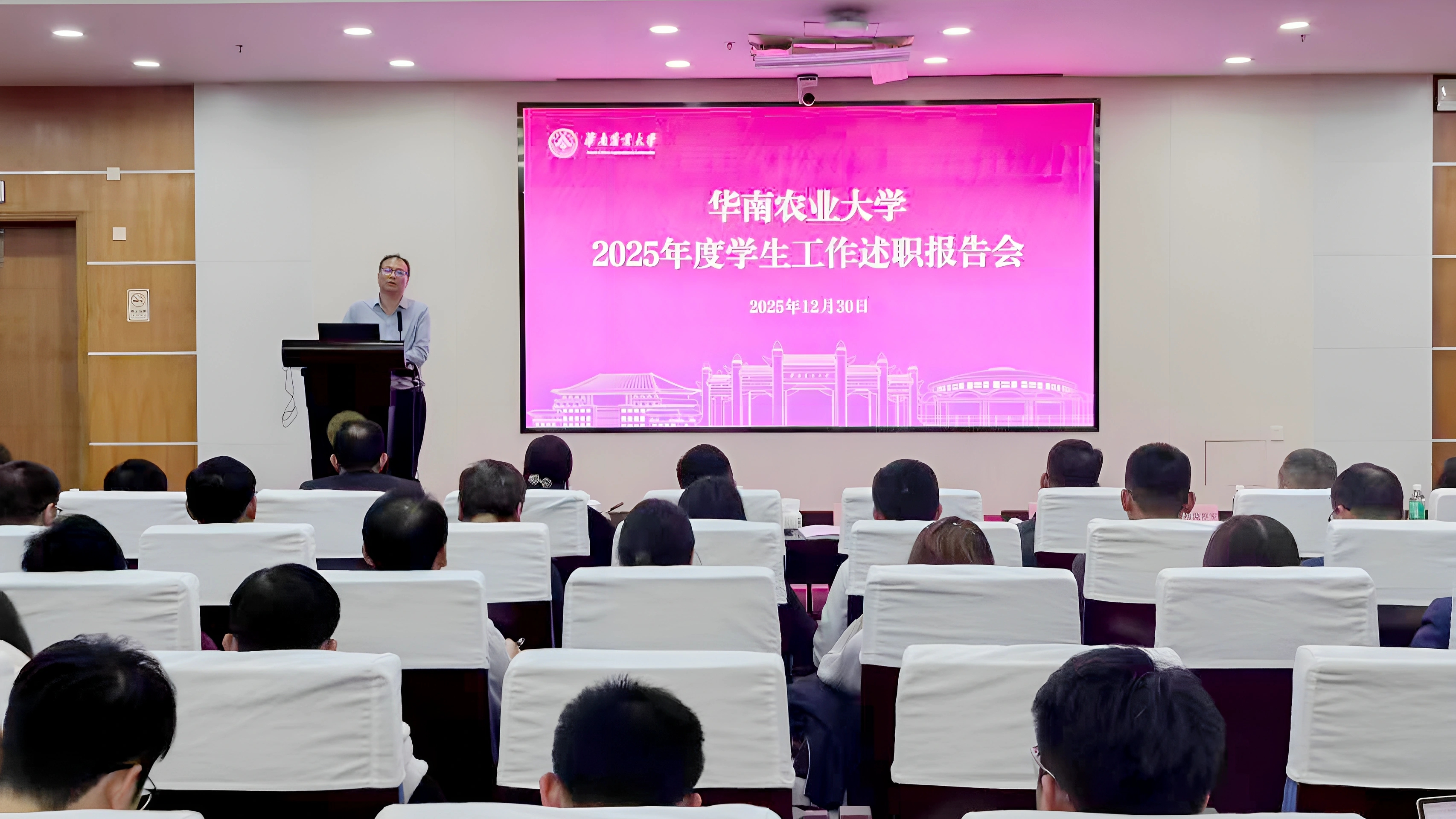 为全面落实学校“提质增效”工作要求,深入推进学校《“固本铸魂,育英强农,构建‘浸润·融通·精准’立德树人机制”综合改革三年行动计划》,提升思想政治工作质量与育人实效,12月30日,学校在行政楼三楼报告厅召开2025年度学生工作总结述职会。校党委副书记丁红星、陈磊出席会议。