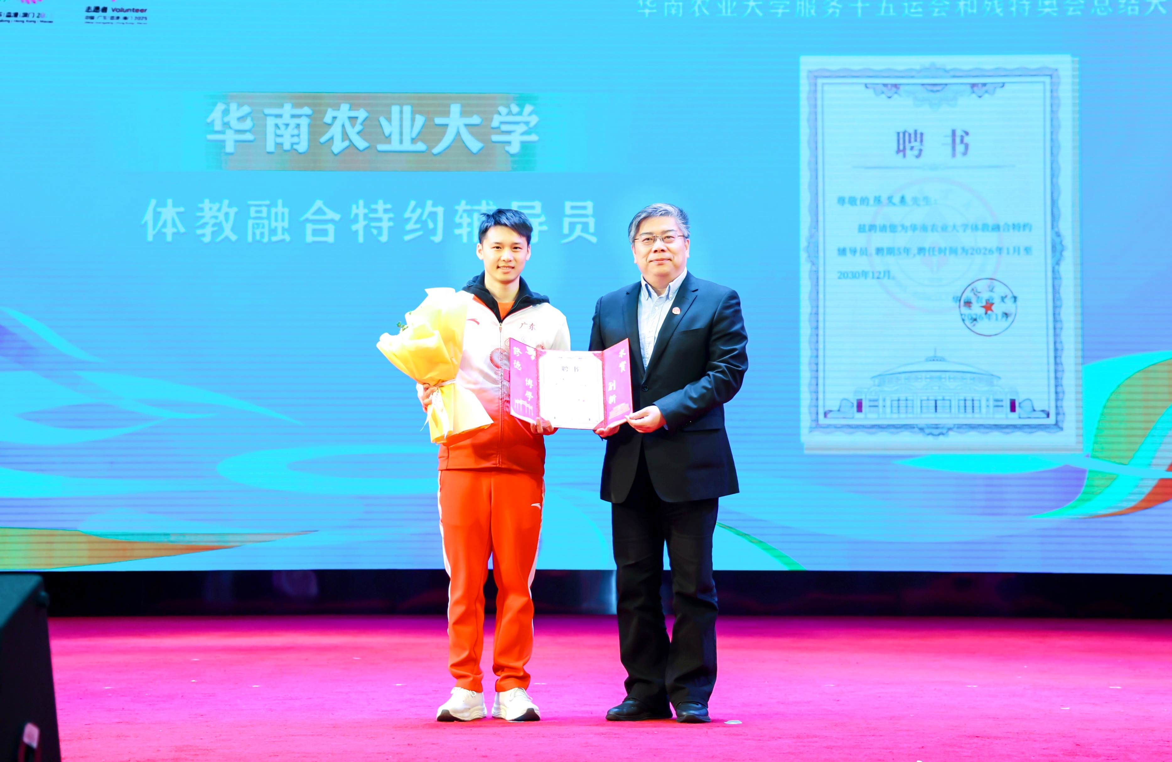 华南农业大学聘任陈艾森为体教融合特约辅导员