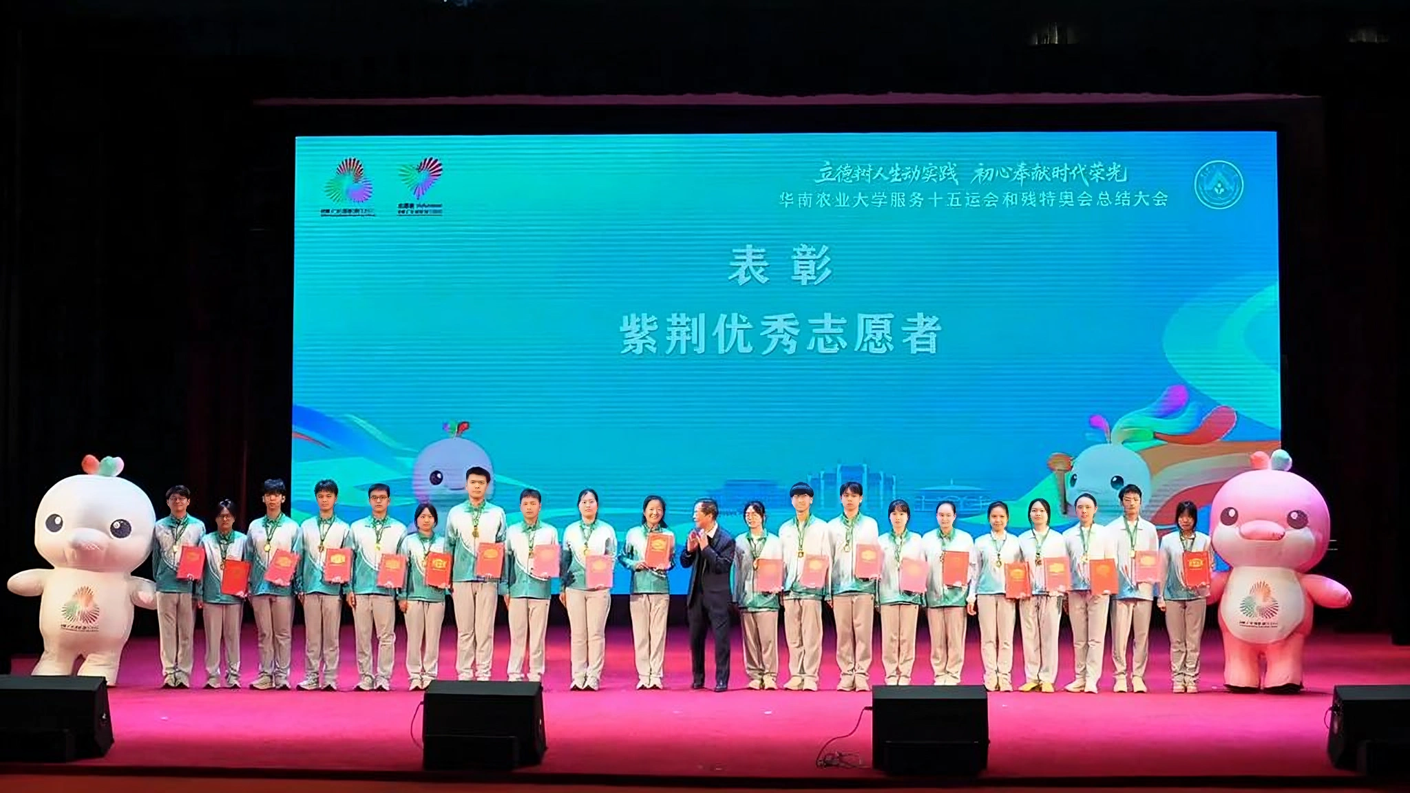 1月10日,华南农业大学在丁颖礼堂举行服务十五运会和残特奥会总结大会。大会全面总结了学校服务保障十五运会和残特奥会工作情况,表彰了一批在服务保障工作中表现突出的先进个人,并为寒假“万名学子乡村大调研行动”吹响集结号,勉励青年学子从服务赛事到建功田野,续写社会服务新篇章。