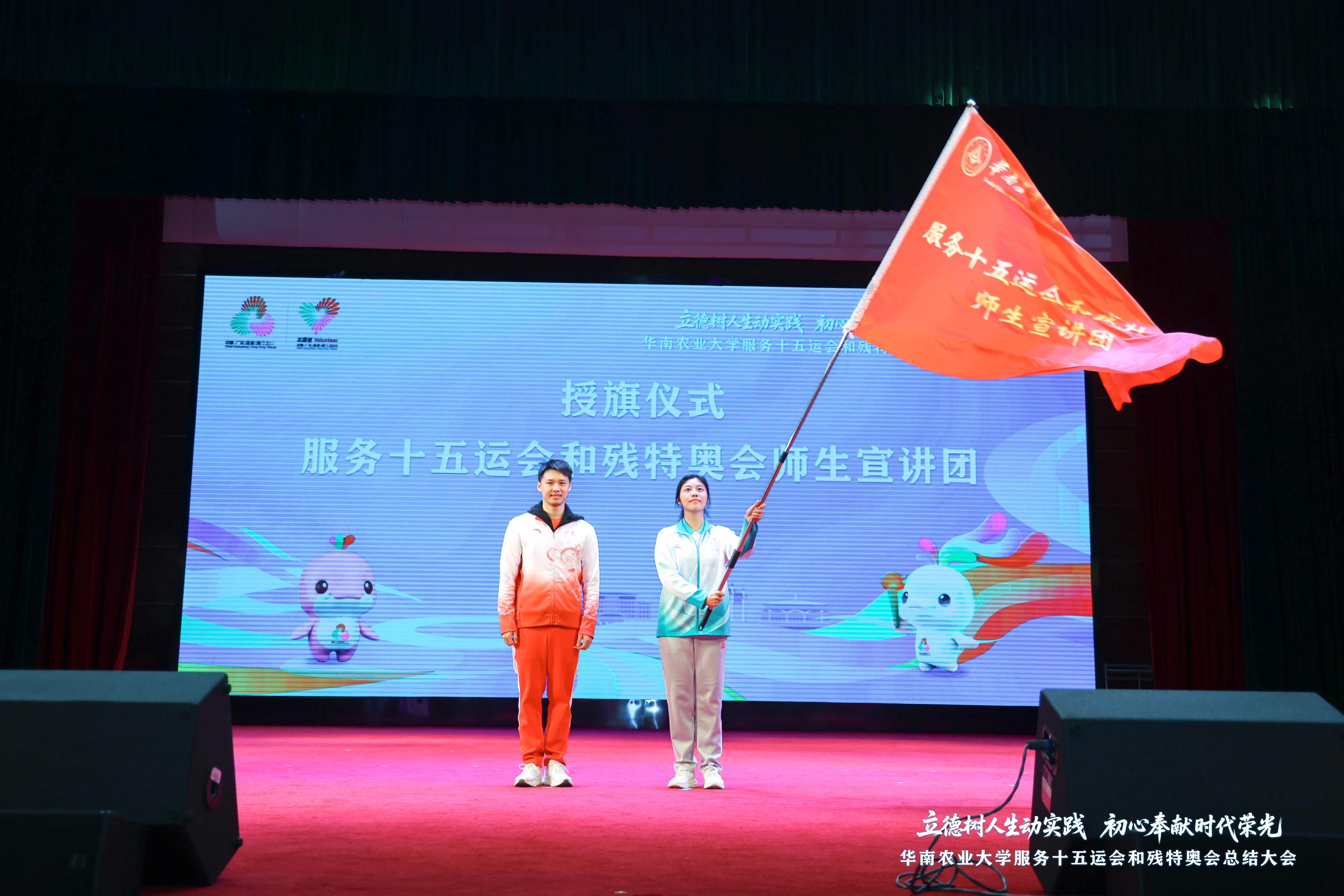 陈艾森为华农服务十五运会和残特奥会师生宣讲团授旗