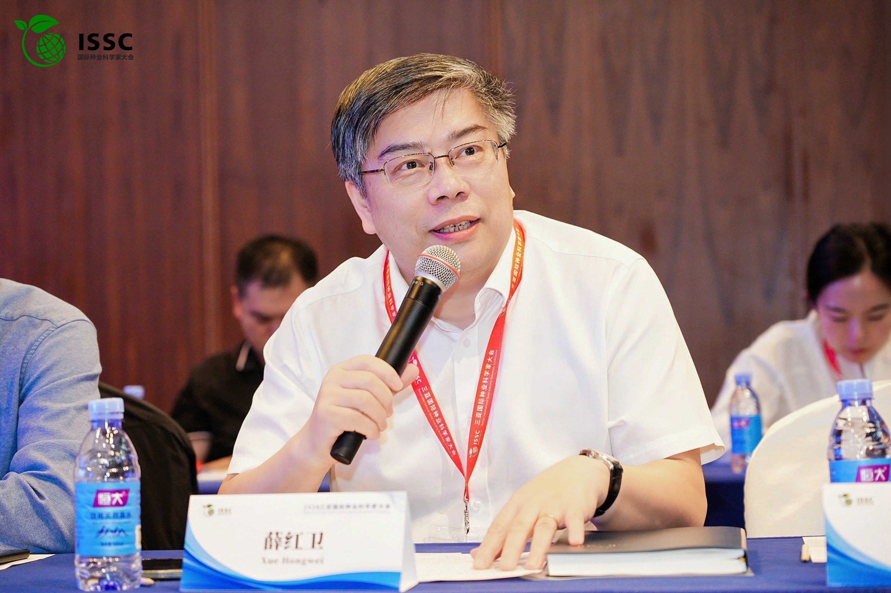 本届大会汇聚20多个国家和地区的30余名中外院士、100多位农业高校校长和院长、2000余名参会代表,聚焦种业前沿科技与产业变革,共同探讨国际种业高质量发展新路径与新机遇,赋能全球农业合作。作为大会副主席,薛红卫在“三亚国际种业科学家代表会议”上听取了三亚·国际种业科学家联合体年度工作报告,审议联合体组织建设相关议题,并主持“水稻育种论坛”,与业界专家学者共同研讨交流水稻育种前沿技术与创新成果。