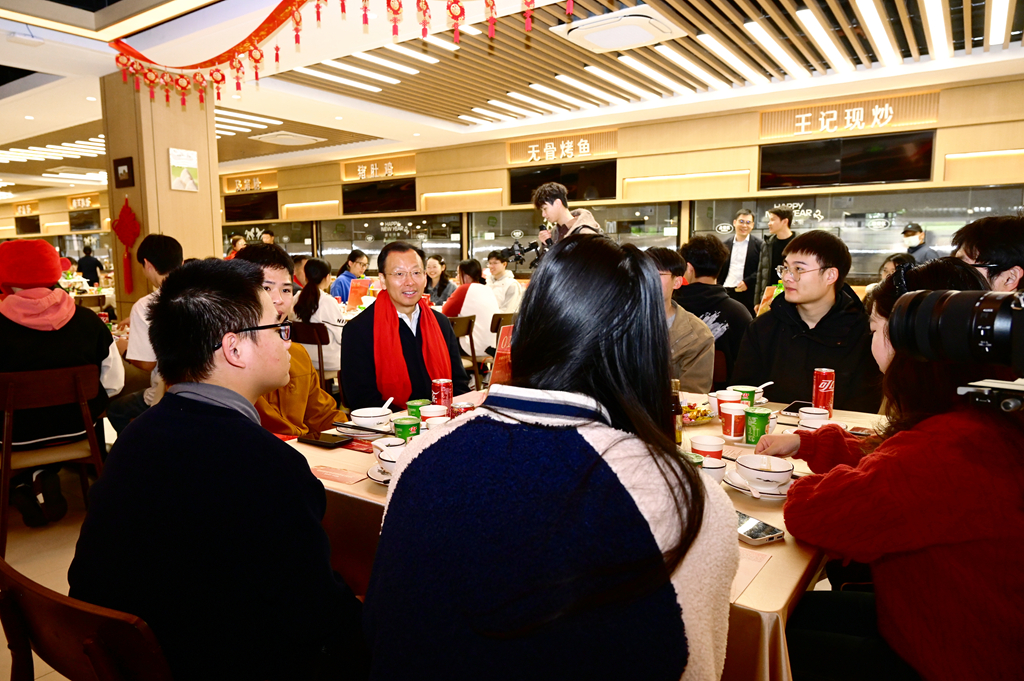 此次走访慰问不仅暖心而且暖胃,学校为留校学生代表准备了“火锅派对”,为当天生日的留校学生庆祝生日,火锅派对上还开展了幸运大抽奖、欢乐大巡游、师生才艺表演等互动活动。校领导和留校学生们围坐一起,边涮火锅边畅聊,共同享受春节即将来临的喜悦。