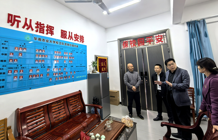 西南门和南门门岗前,校卫队队员们精神抖擞、着装整齐,薛红卫与队员们一一握手,并关切询问执勤情况。“华农的平安,离不开大家的日夜守护,你们是校园安全的第一道防线。”他叮嘱队员们执勤时注意防寒保暖、劳逸结合,继续以严谨细致的工作作风,筑牢校园安全屏障。