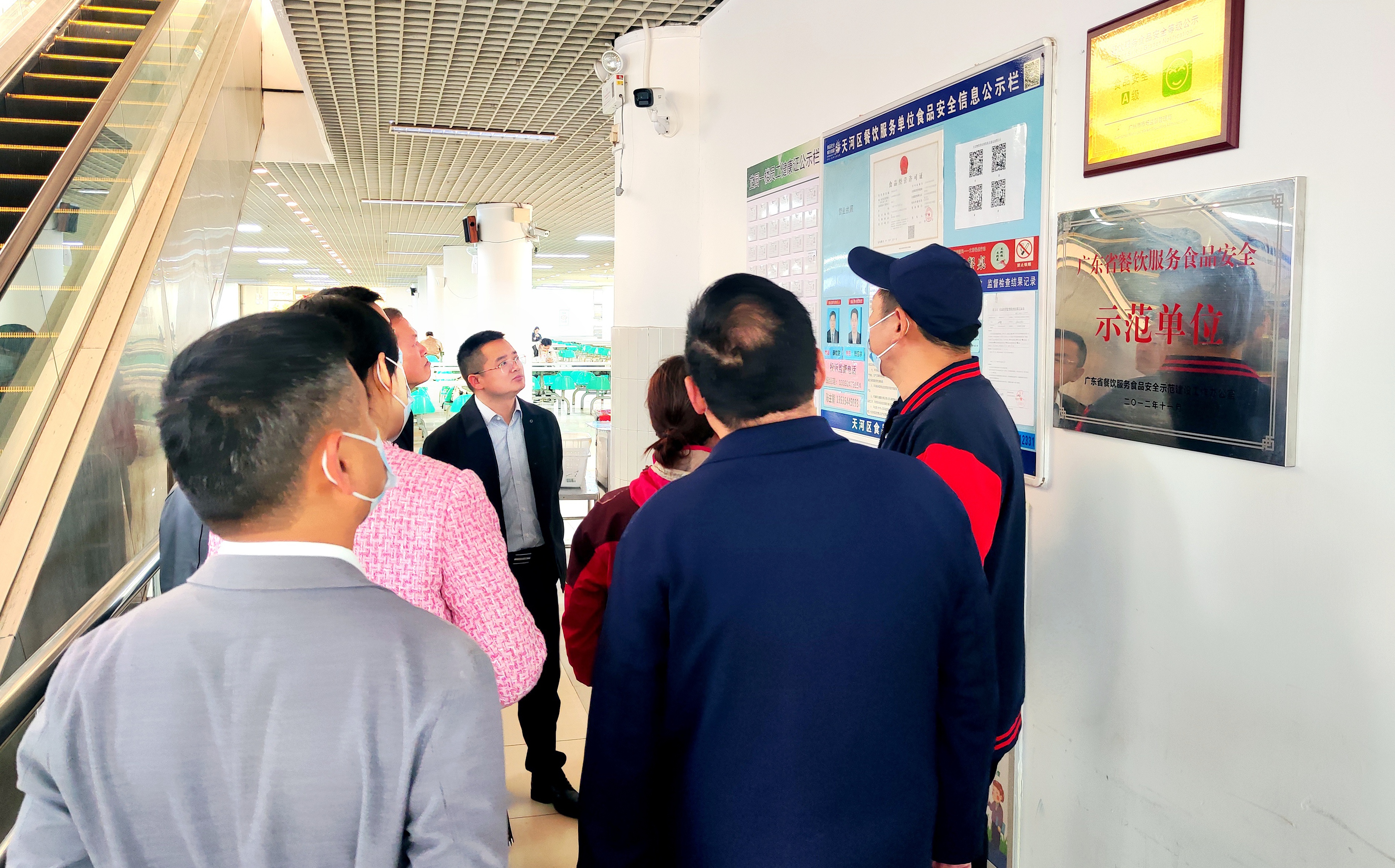 检查组一行深入食堂仓库、粗加工区、烹调间、洗消间、保洁间、更衣室、备餐间到售卖大厅等工作区域,进行了细致排查,核查了验收、洗菜、切菜、烹调熟制到销售、回收等重点环节,详细了解设施设备安全使用、食品安全制度落实、餐具清洗消毒、原料索证索票购进记录、病媒生物防治以及食品留样、加工、检验等方面情况,并提出了指导性意见。