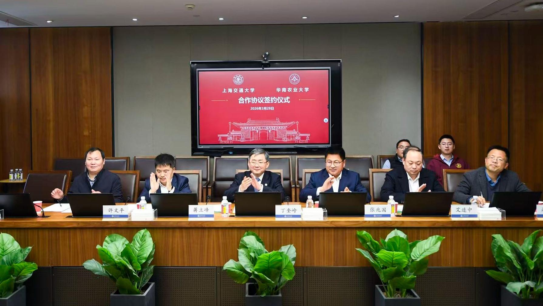 3月28日,华南农业大学与上海交通大学共同服务和深化乡村全面振兴合作协议签约仪式在上海举行。华农校长薛红卫、上海交大校长丁奎岭见证签约仪式。华农副校长钟强与上海交大副校长张兆国代表双方共同签署协议。