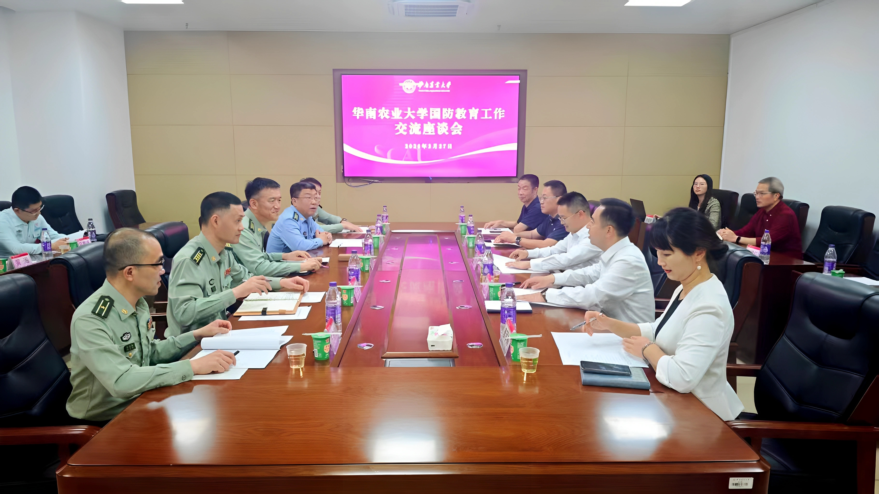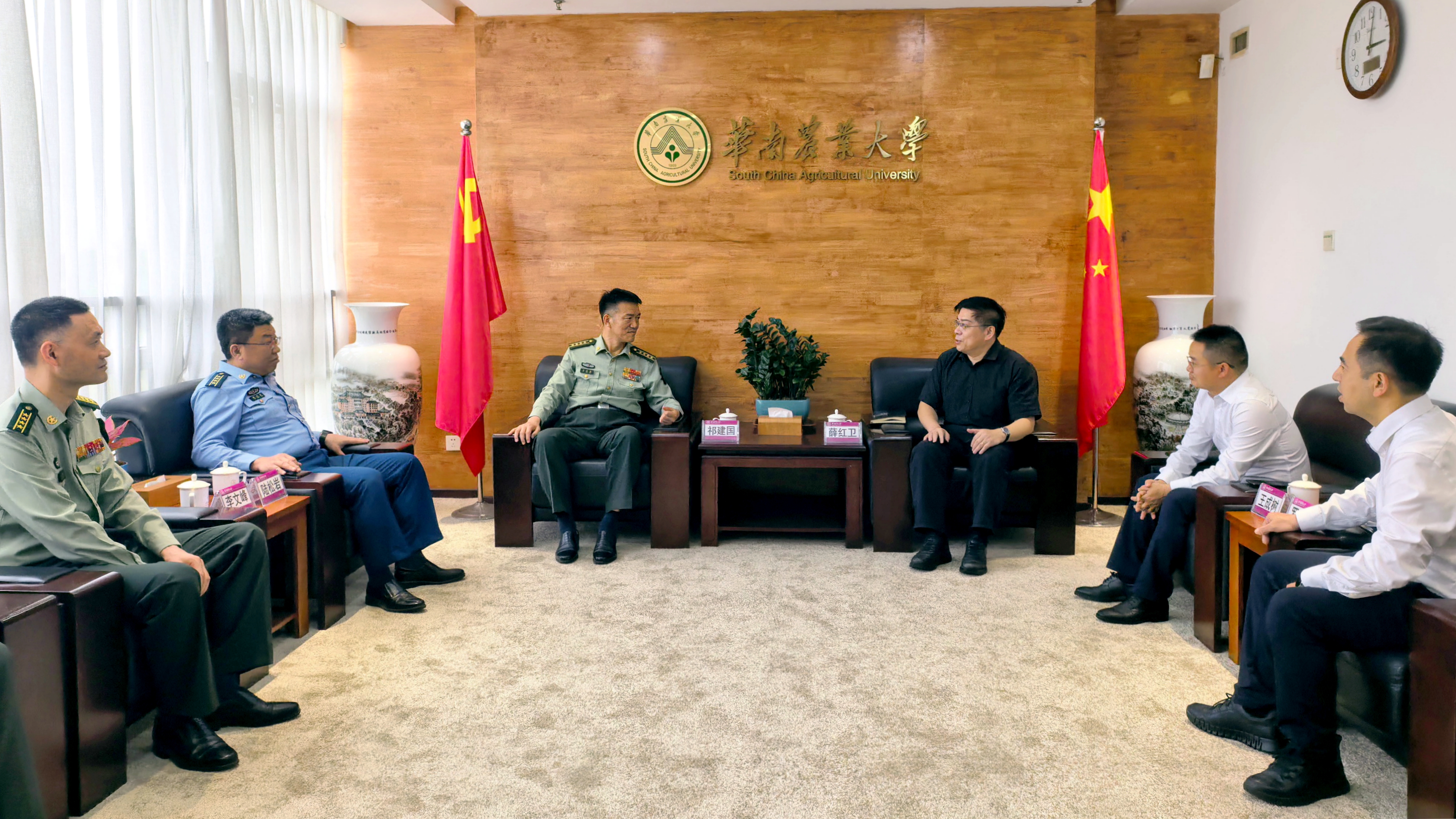 为进一步深化军地协同联动,推动学校国防教育和征兵工作提质增效、规范化发展,近日,广东省军区动员局局长祁建国、广州警备区司令陆松岩一行到访我校开展国防教育工作调研交流。校长薛红卫、副校长王成树接待来宾并座谈。