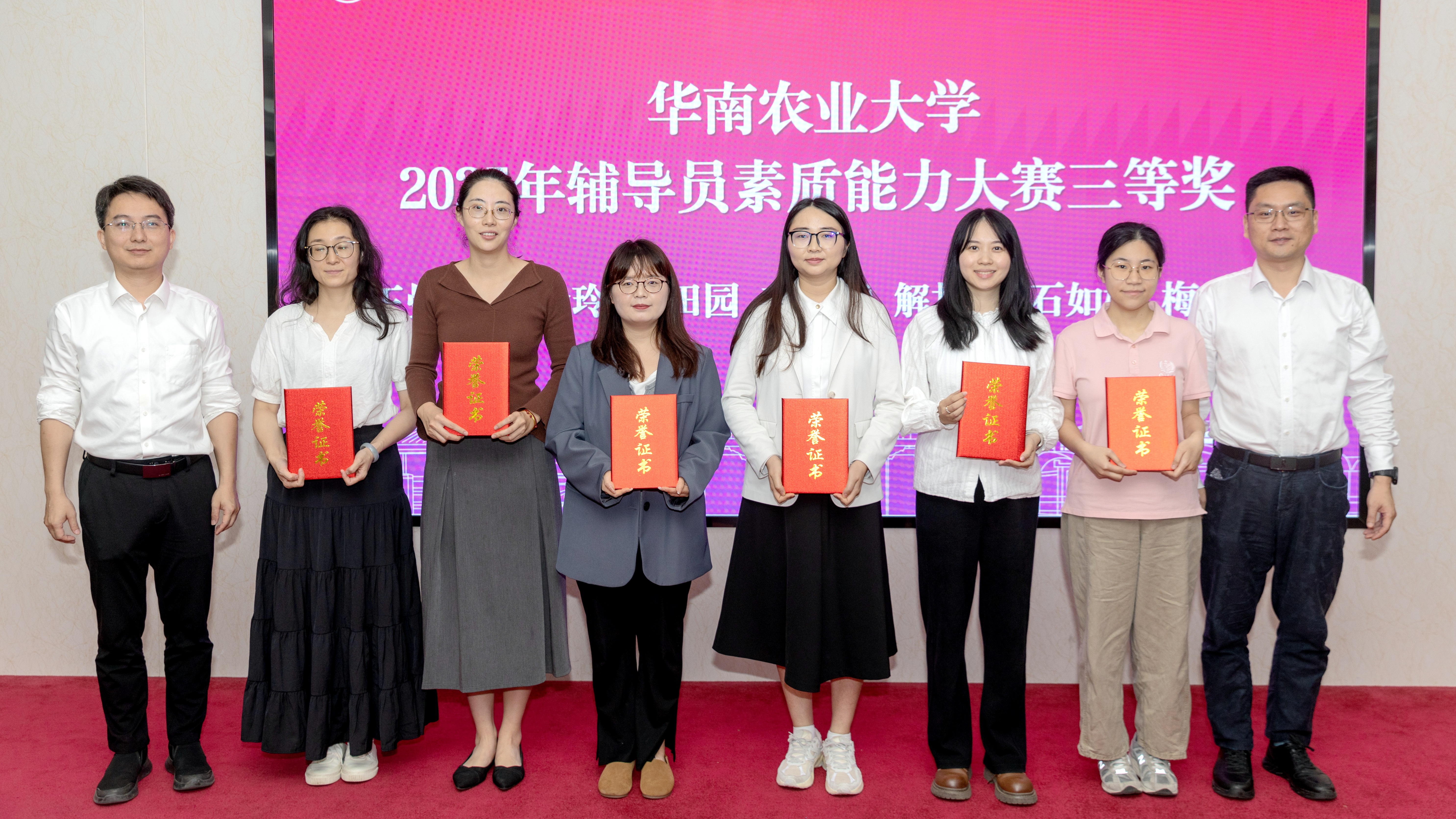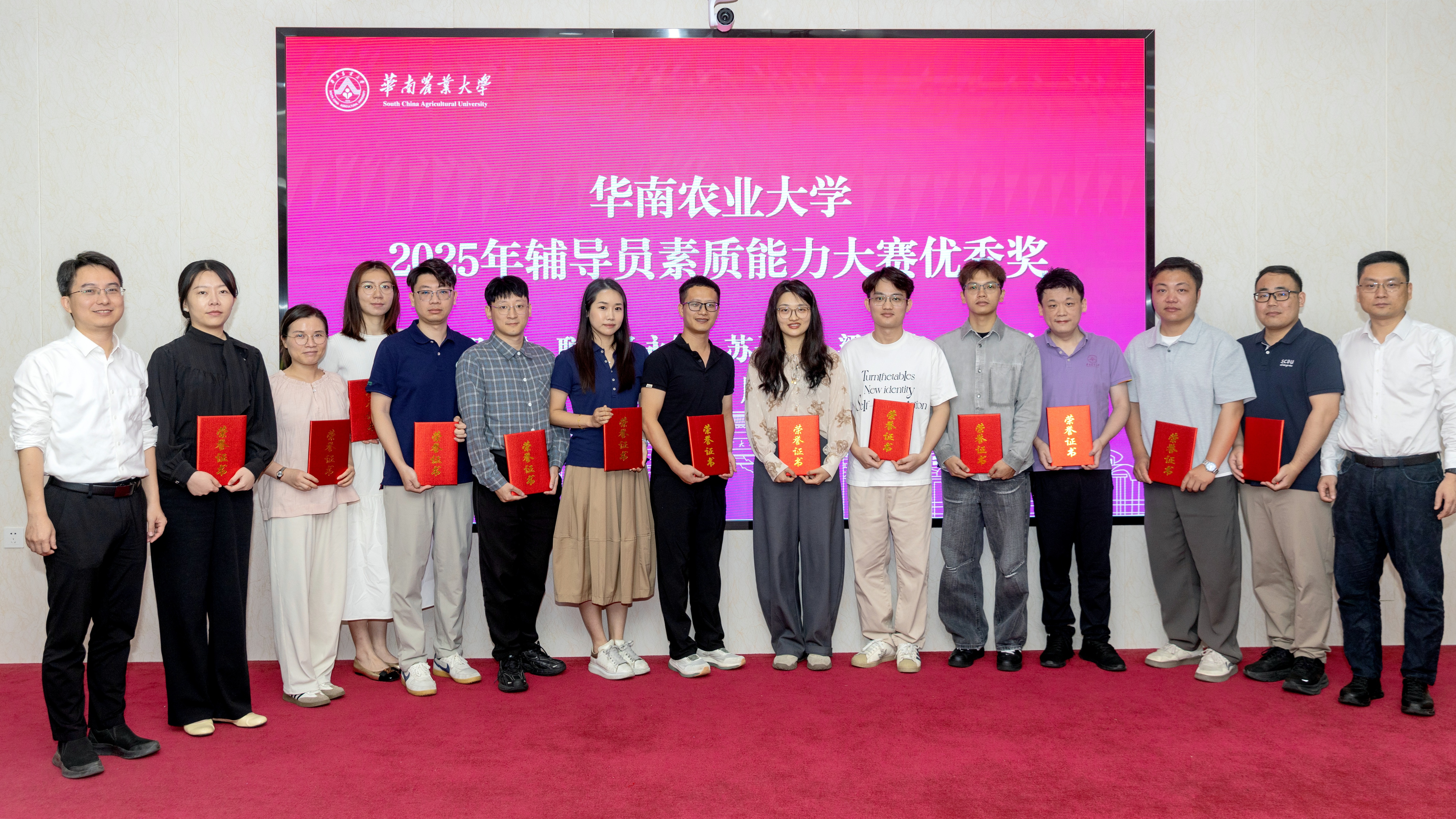 大会进行了表彰仪式,动物科学学院、林学与风景园林学院、经济管理学院、植物保护学院、人工智能与低空技术学院、资源环境学院获“2025年度学生工作先进集体”称号,材料与化学工程学院、工程学院、国际教育学院(广州都柏林国际生命科学与技术学院)获“2025年度学生工作进步奖”,动物科学学院、植物保护学院获“2025年度学生工作突出贡献奖”,国际教育学院(广州都柏林国际生命科学与技术学院)获“2025年度学生工作安全守护争先奖”。会议为学校2025年辅导员素质能力大赛一、二、三等奖及优秀奖共28位获得者颁发荣誉证书。