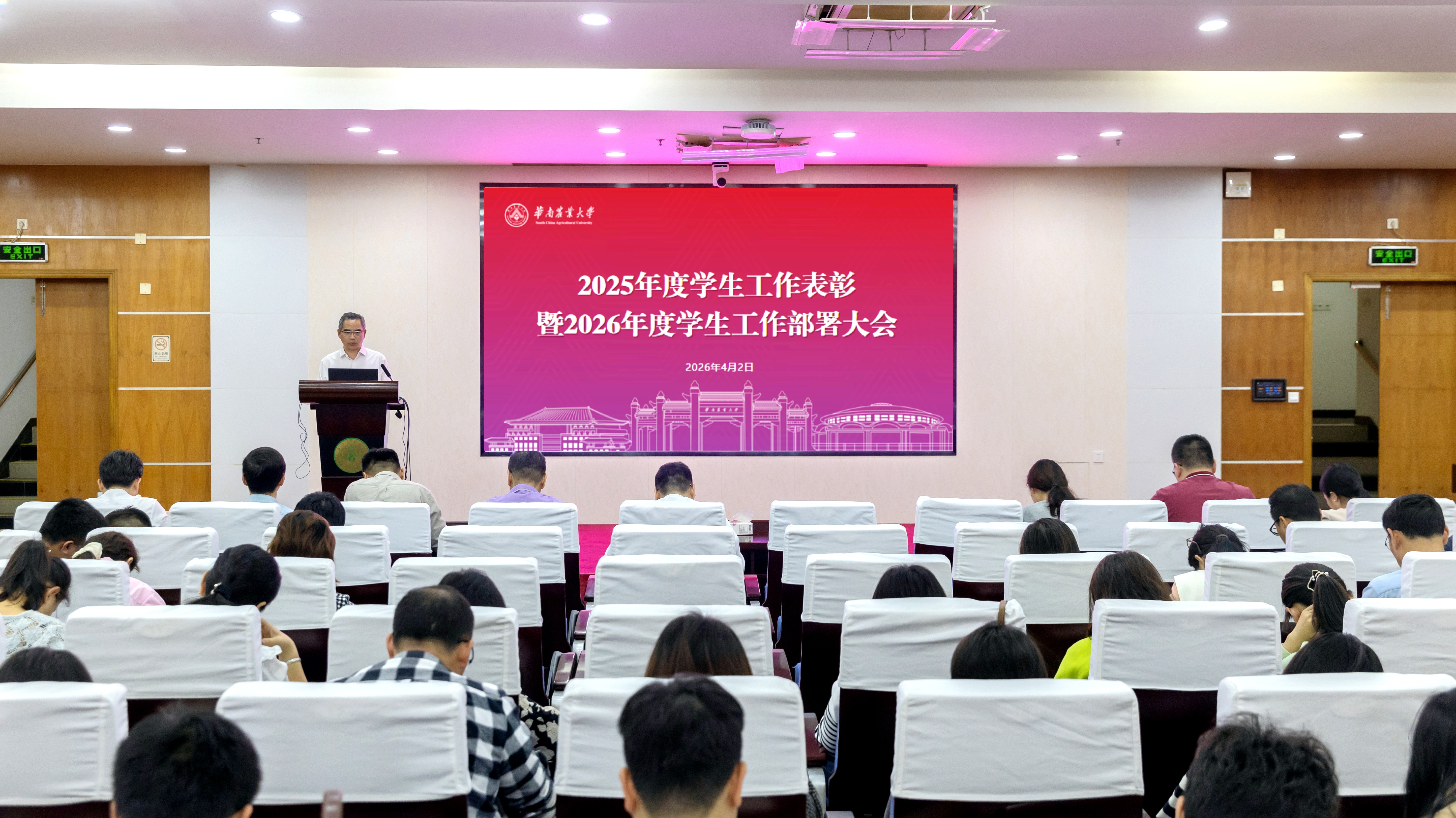 4月2日上午,华农2025年度学生工作表彰暨2026年度学生工作部署大会在行政楼三楼报告厅召开。副校长陈乐天参加会议并讲话。