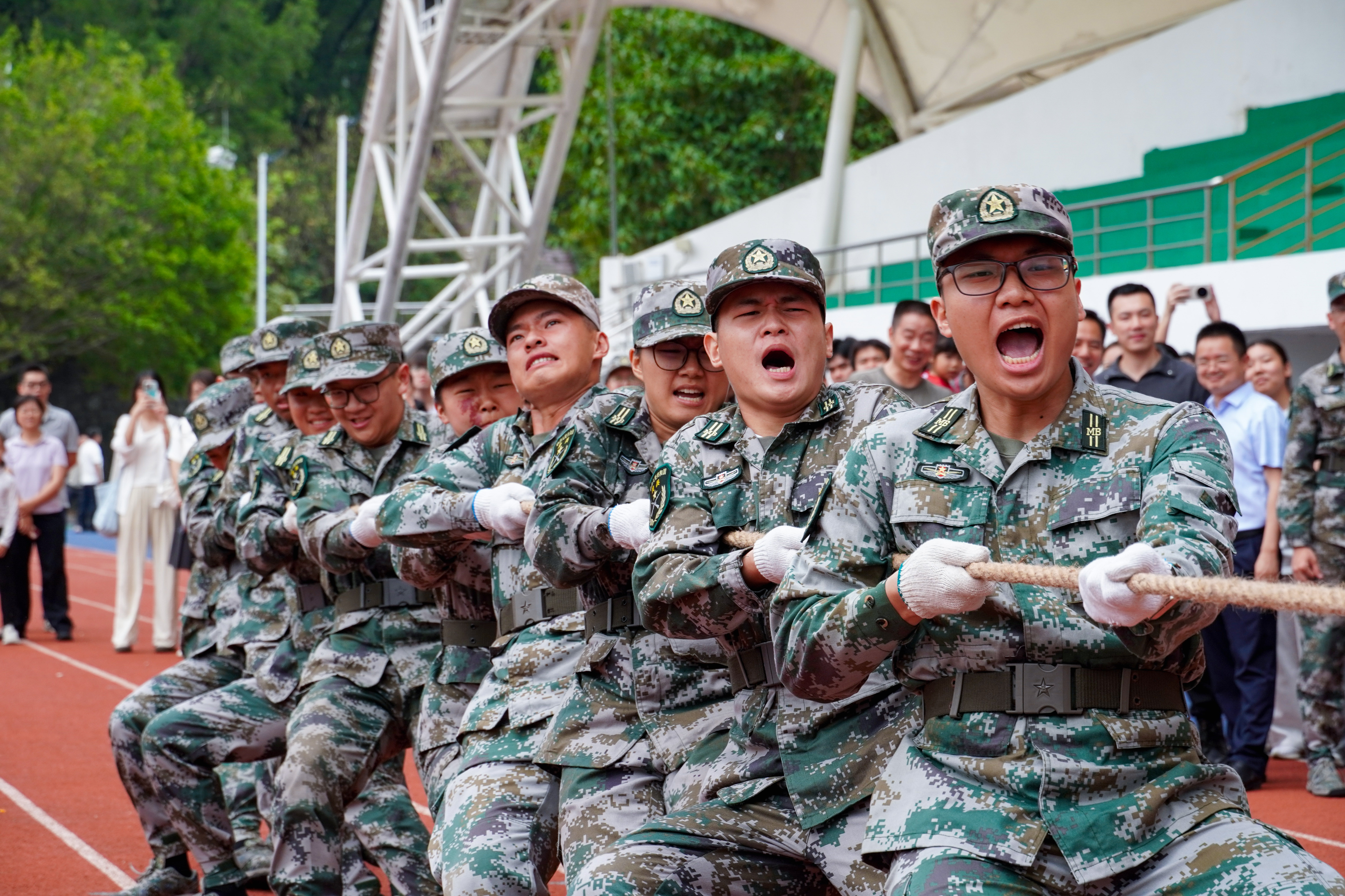 现场举行射击战术、擒拿格斗、刺杀术等军事课目展演,进行了军歌比赛、拔河比赛、篮球比赛,参赛学生气势昂扬,奋勇争先,充分展现了军训教官团过硬的军事素养。