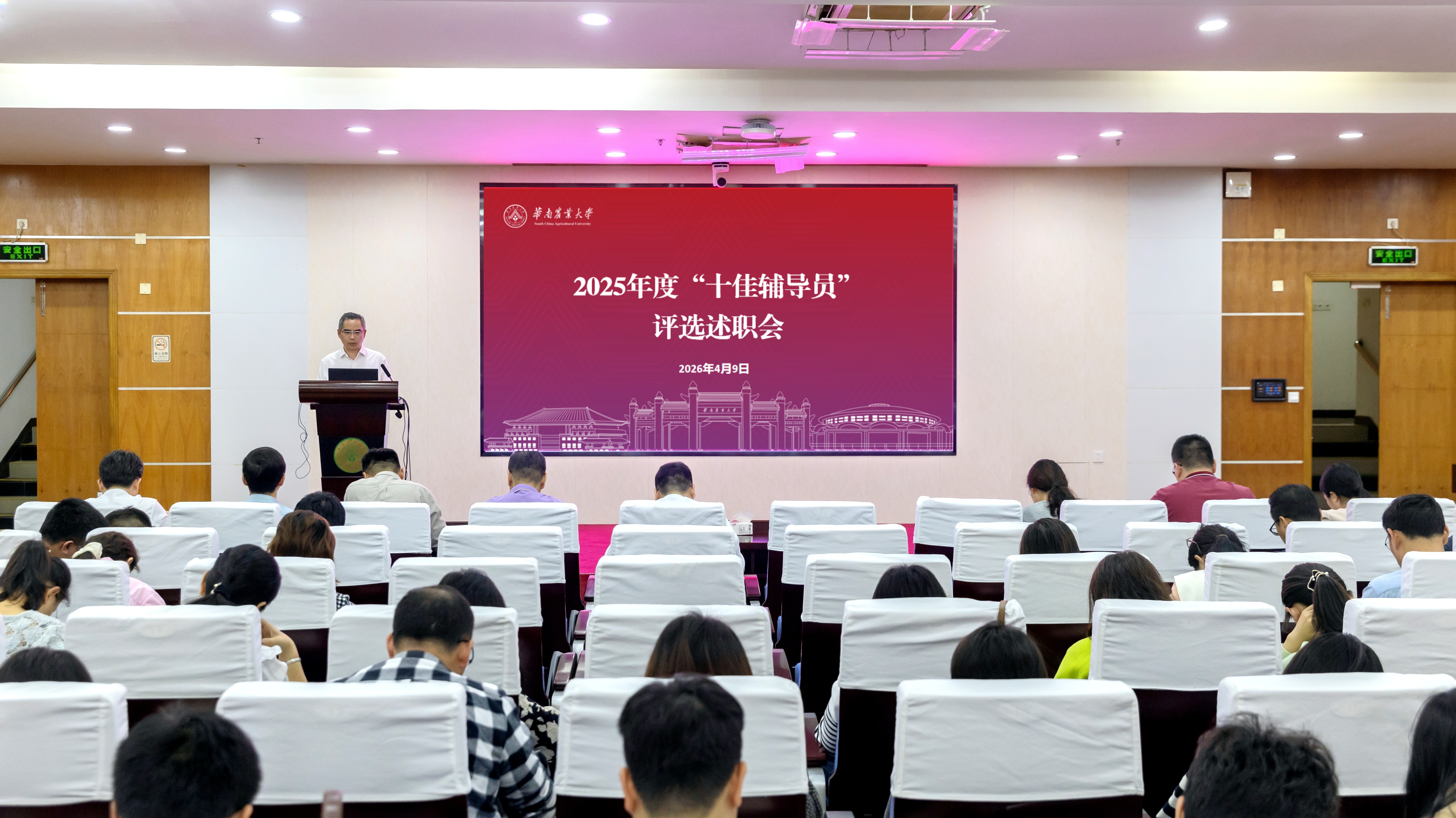 近日,华农2025年度“十佳辅导员”评选述职会在行政楼三楼报告厅举行。会议评选出了2025年度“十佳辅导员”、优秀新人奖、砥砺奋进奖、耕耘奉献奖拟获奖名单。副校长陈乐天参加会议并讲话。